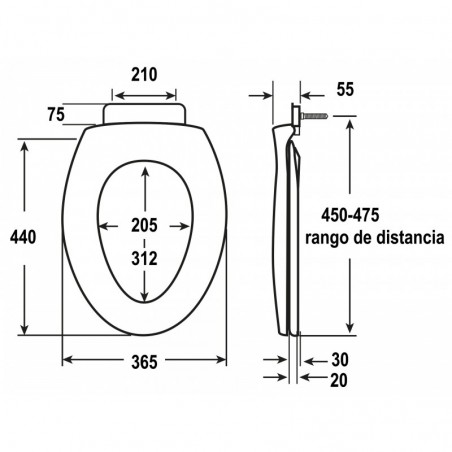 Tapa y Asiento de WC de forma ovalada y cierre suave.