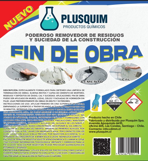 ¿Terminaste tu obra y los residuos de cemento y fragüe han arruinado el aspecto final? Necesitas una solución profesional: el Detergente Fin de Obra Plusquim de 5 Litros.