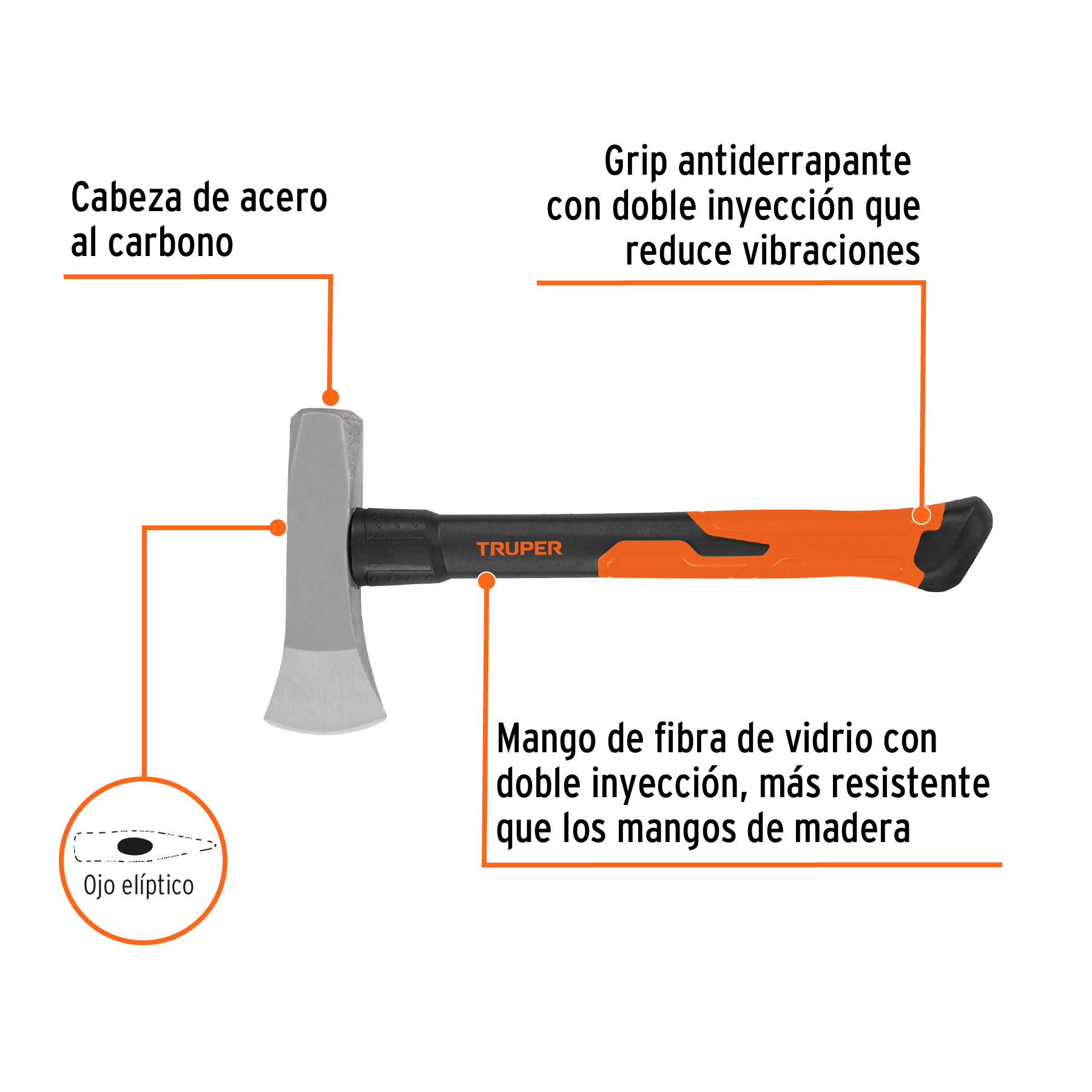 Cabeza en acero al carbono con doble tratamiento térmico para mayor resistencia y durabilidad de filo
