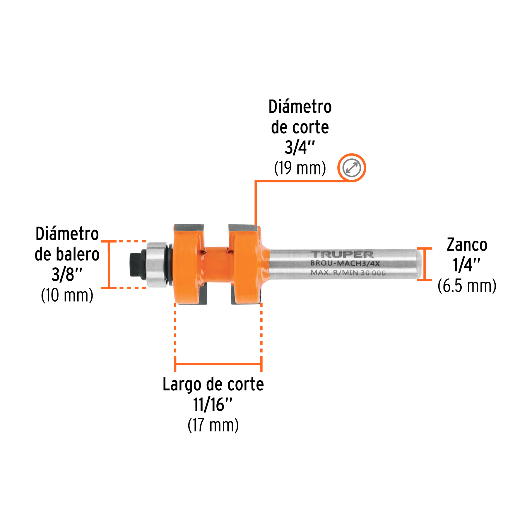 Cuerpo de acero al cromo y cuchilla de carburo de tungsteno