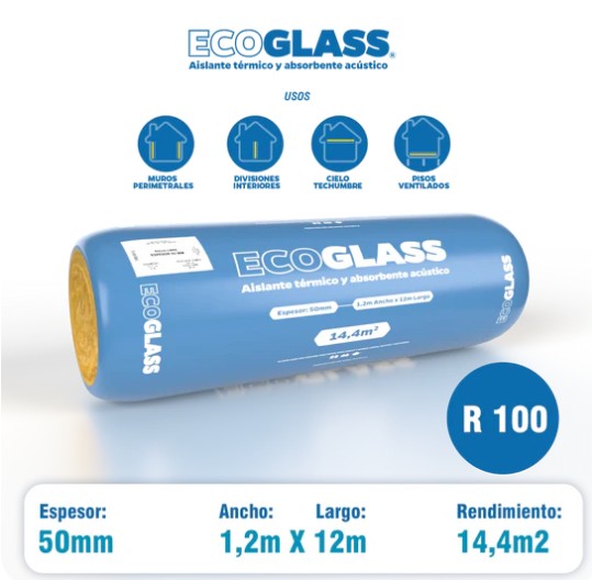 Además de su alto desempeño en aislación térmica y absorción acústica, Ecoglass está fabricado con hasta un 80% de material reciclado, integrando eficiencia y sostenibilidad en una misma solución.