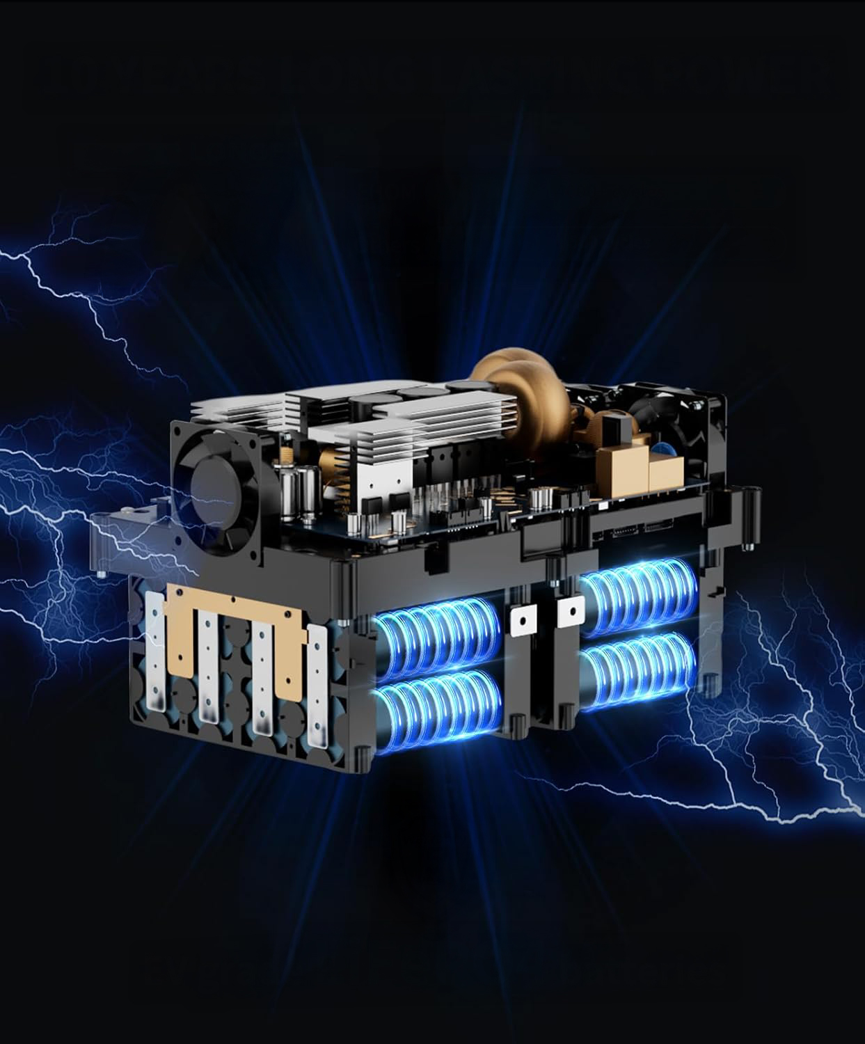 - Batería de Larga Duración: Equipada con tecnología de batería LiFePO4 (EV LFP), ofrece una vida útil prolongada con más de 3500 ciclos de uso, garantizando durabilidad y seguridad gracias a su resistencia al sobrecalentamiento.