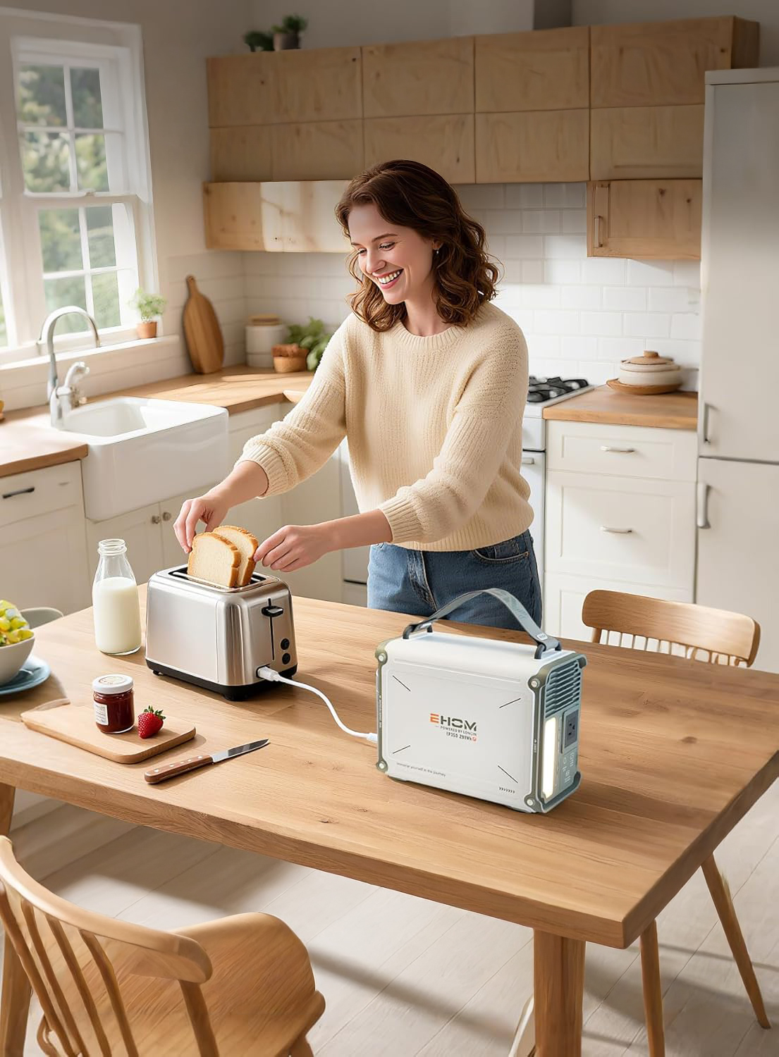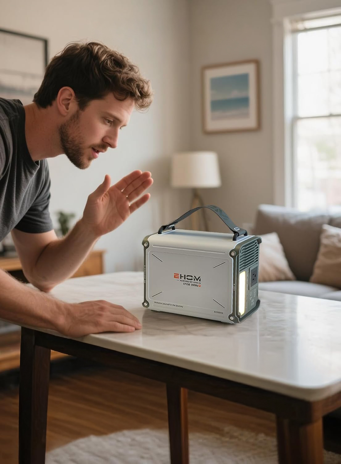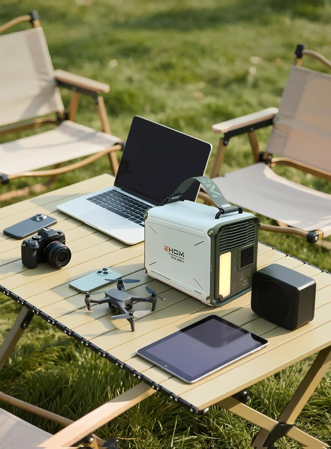 La Estación de Energía Portátil EHOM EP350 es la solución ideal para mantener tus dispositivos y pequeños electrodomésticos funcionando dondequiera que estés. Con una potencia nominal de 350W y una sólida capacidad de 299 Wh (alrededor de 307 Wh en algunas versiones), este generador portátil compacto y eficiente utiliza ondas sinusoidales puras para suministrar energía limpia y segura.