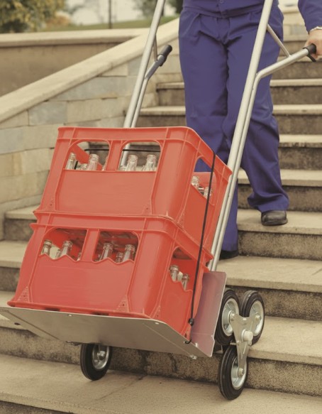 - Sistema de Ruedas Triangulares: Su innovador diseño permite subir y bajar escaleras con fluidez y estabilidad, reduciendo significativamente el esfuerzo físico del operario.